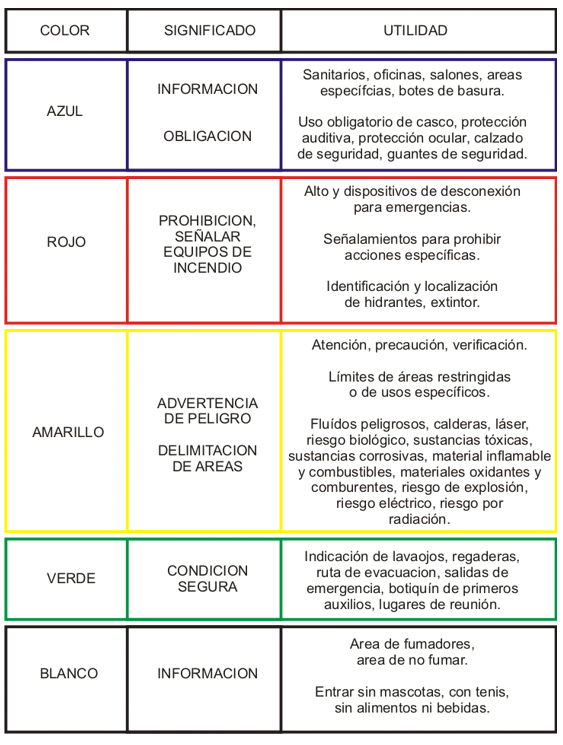 A continuación, le mostramos una breve explicación de los diferentes colores, utilizados en los señalamientos: